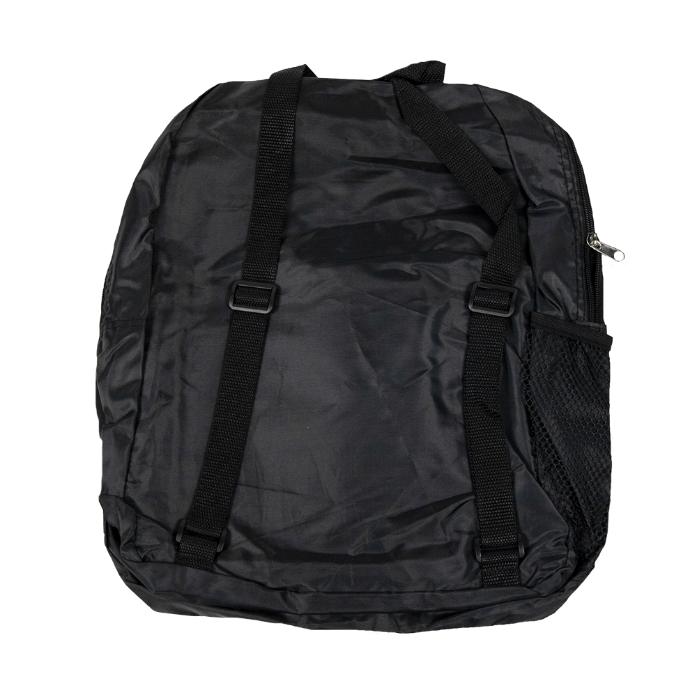 Made of 210D Polyester Adjustable shoulder straps and web carrying handle Front zippered pocket Side Mesh pocket Zippered main compartment Spot clean/air dry