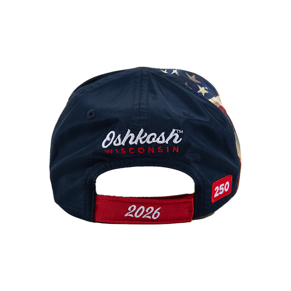 Celebrate aviation history with this premium America 250 cap, dated 2026 and crafted from 100% cotton twill for lasting durability. Featuring a structured design, sewn eyelets for breathability, and a flat bill for that classic look, it's finished with a self-fabric strap and antique brass buckle. A timeless piece for true flying enthusiasts.