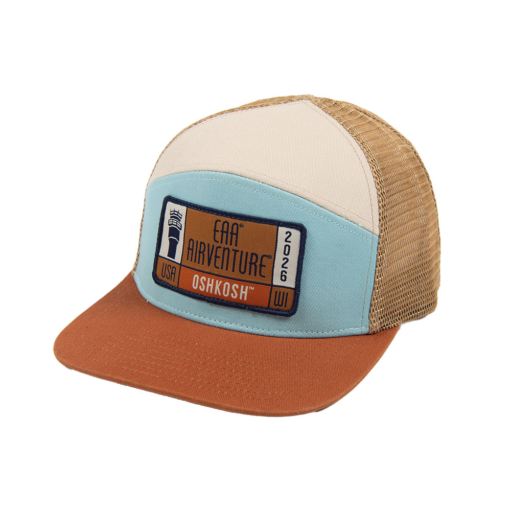 Capture the iconic spirit of Oshkosh with this distinctive copper-framed cap featuring a striking patch featuring the KOSH control tower dated for AirVenture 2026. This timeless design celebrates the heart of aviation's most legendary gathering, making it the perfect keepsake for this year's event. Wear it now and treasure it forever.
