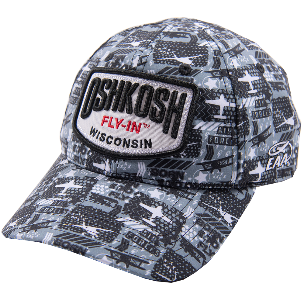Take to the skies in style with this charming grey cap featuring an all-over airplane print inspired by the legendary Oshkosh Fly-In. Perfect for aviation enthusiasts and casual flyers alike, this playful headwear celebrates the thrill of flight with its whimsical design. Whether you're heading to the airfield or just want to show off your love for aviation, this cap keeps the spirit of adventure close to your heart.