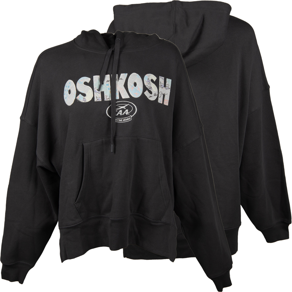 The Oshkosh lettering is printed and then appliqued across the chest for a layered, textured look, while the embroidered EAA Lifetime Member logo sits just below—an understated yet meaningful tribute to your aviation community. This is your new go-to for cool days, casual weekends, and everything in between.