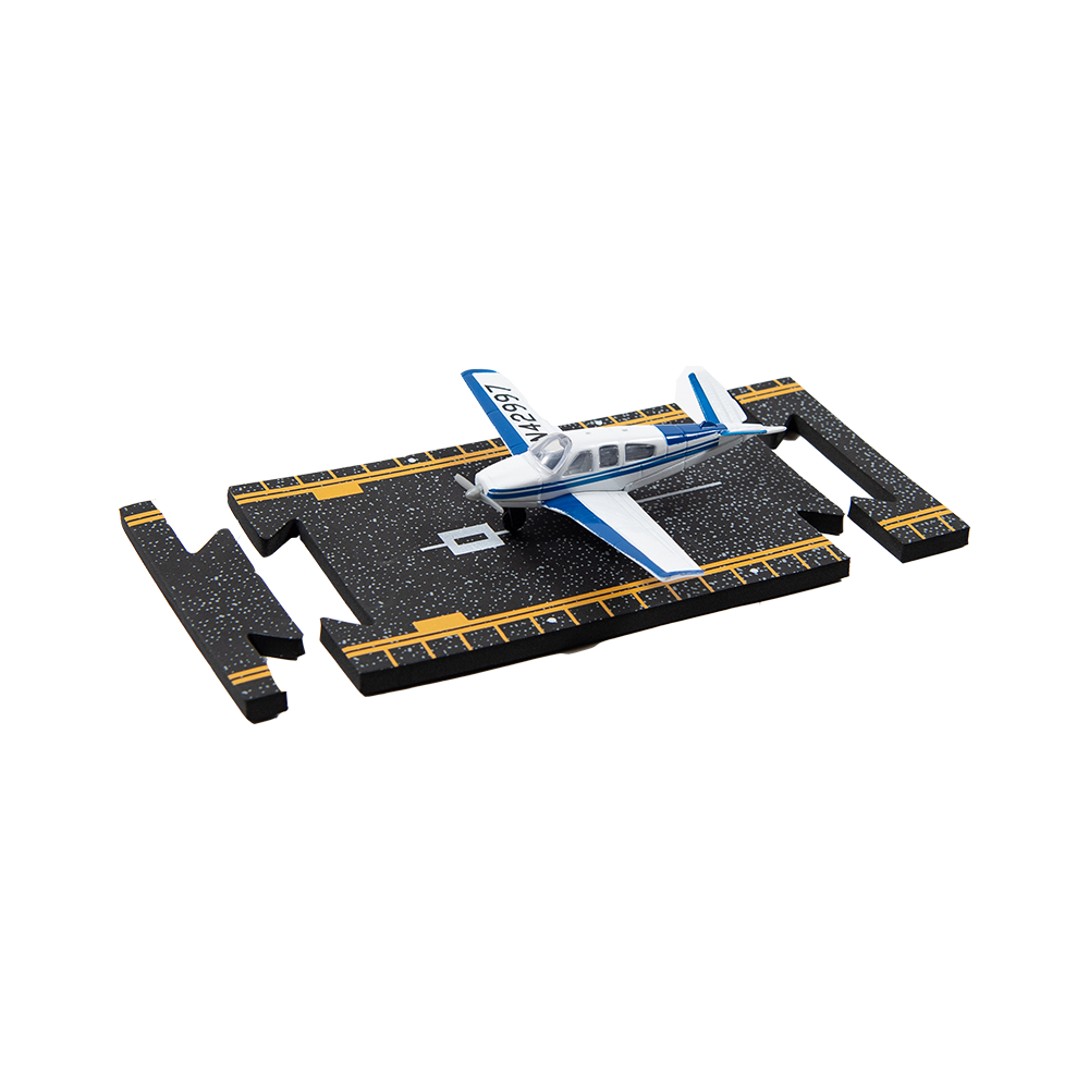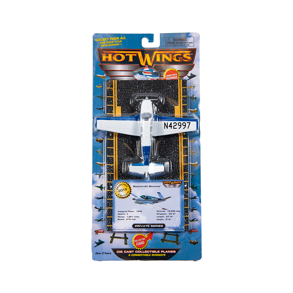 Each Hot Wings plane comes with proprietary connectible 6" runway that allows collectors to build their own runways and a collector card providing flight specs for each plane.