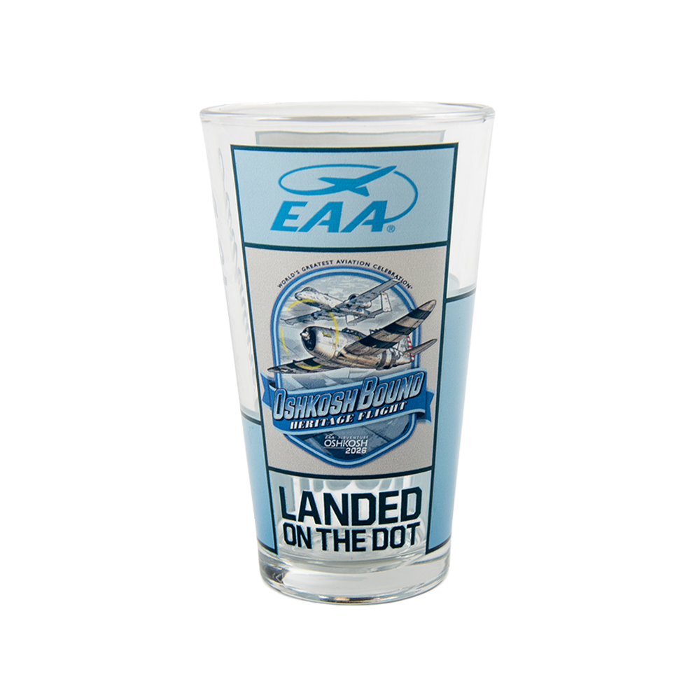 Raise a glass to the skies! This pint glass celebrates Oshkosh Bound 2026 in style, perfect for toasting your favorite aviation memories or enjoying a cold beverage after a day of airshow adventures. With its vibrant design and generous capacity, it's an ideal keepsake for EAA enthusiasts who want to keep the spirit of flight alive at home. Cheers to another year of wings, wonder, and unforgettable moments in the clouds.