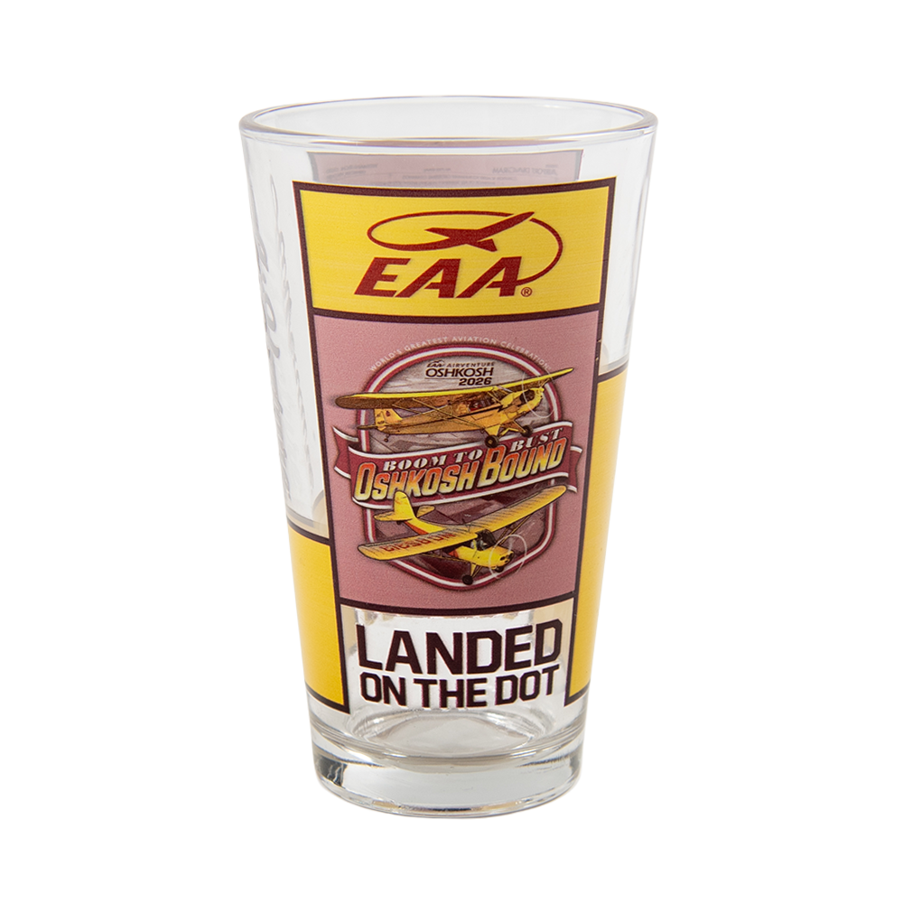 Raise a glass to the skies! This pint glass celebrates Oshkosh Bound 2026 in style, perfect for toasting your favorite aviation memories or enjoying a cold beverage after a day of airshow adventures. With its vibrant design and generous capacity, it's an ideal keepsake for EAA enthusiasts who want to keep the spirit of flight alive at home. Cheers to another year of wings, wonder, and unforgettable moments in the clouds.