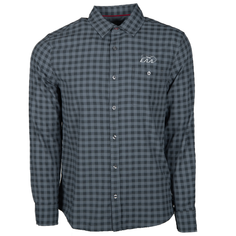 This long-sleeve button-up combines comfort with function, featuring premium performance fabric that keeps you cool and dry whether you're at the airfield or heading out for the day. The iconic EAA logo proudly displayed on the chest makes it the perfect choice for aviation enthusiasts who want to show their passion. Versatile enough for casual wear or layering, this shirt delivers both looks and performance.