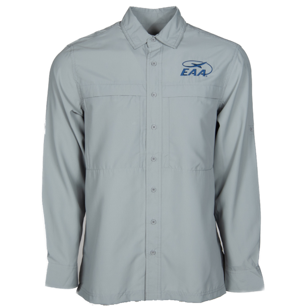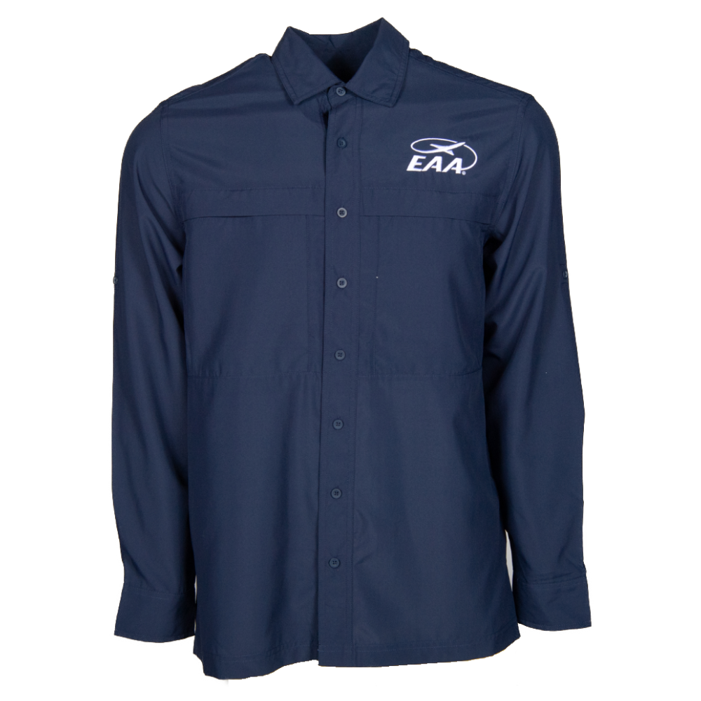 Fly high in style with the EAA Pocketed Performance Button-Up! This long sleeve essential combines comfort with function, featuring practical pockets for all your aviation adventures. Built with performance fabric that moves with you, whether you're at the airshow or the office, this button-up keeps you looking sharp and feeling great. Perfect for EAA enthusiasts who refuse to compromise on quality or style.