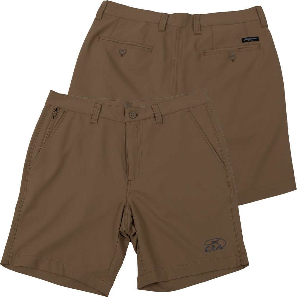 Get ready to turn heads whether you're catching an airshow or on the golf course, in these men's performance shorts. With an 8" inseam and made from 100% polyester, they keep you comfy and cool. Plus, the EAA logo embroidery lets you share your love for aviation with everyone around!