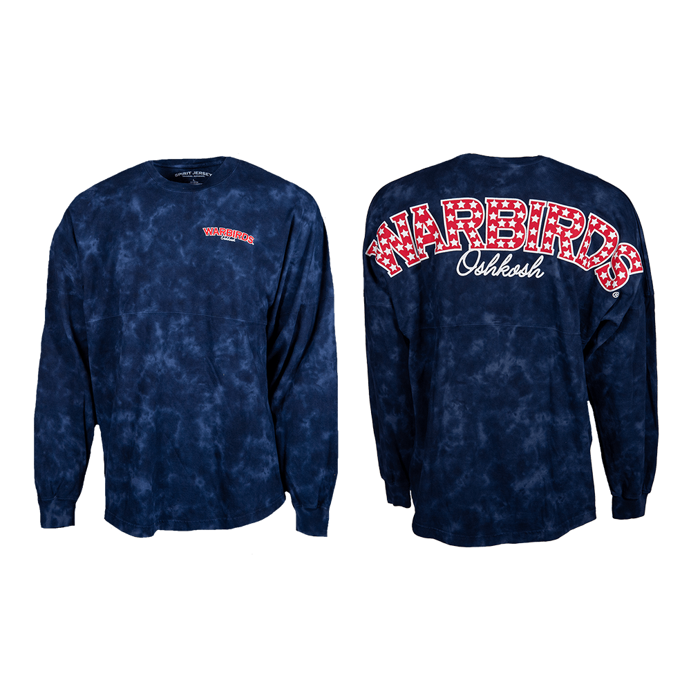 Crystal Dye Blue crew neck with stars in "Warbirds"