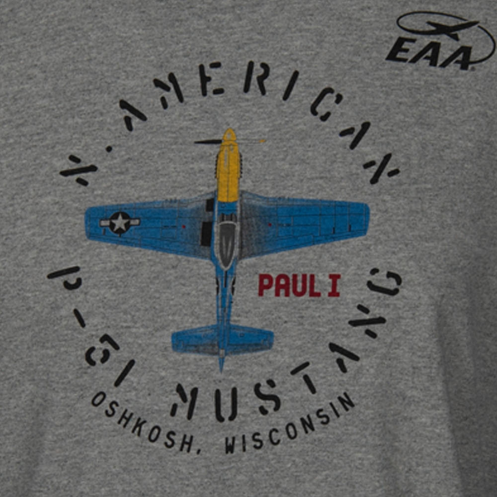 This EAA Red Canoe Paul I P-51 Mustang proudly features the Paul I markings. Made from 100% premium cotton and manufactured in North America, this T-shirt offers exceptional comfort and quality.