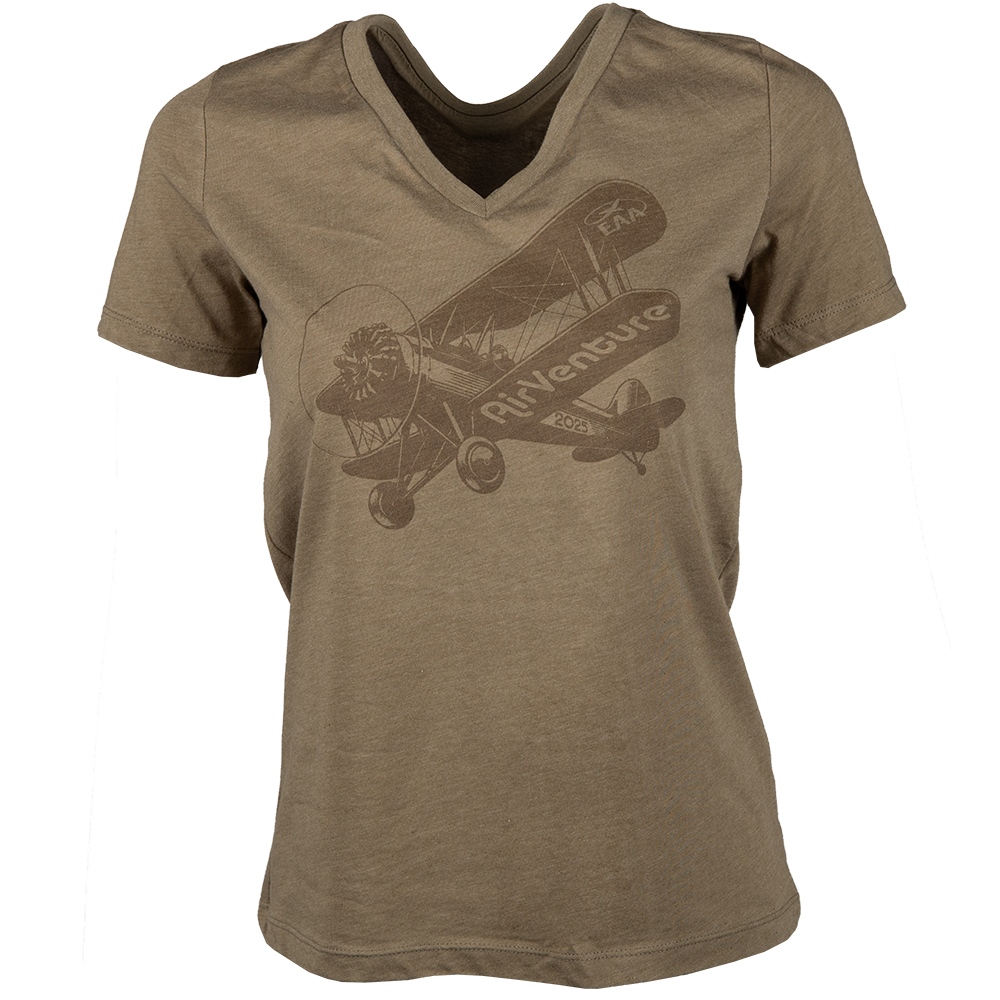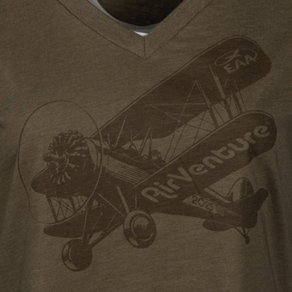 Celebrate classic aviation style with the EAA AirVenture 2025 Biplane T-Shirt. This olive tee features a tonal screen-printed biplane on the front, blending vintage charm with modern simplicity. Made from pre-shrunk cotton for lasting comfort, it offers a relaxed fit that’s perfect for long days on the flightline or casual wear year-round.