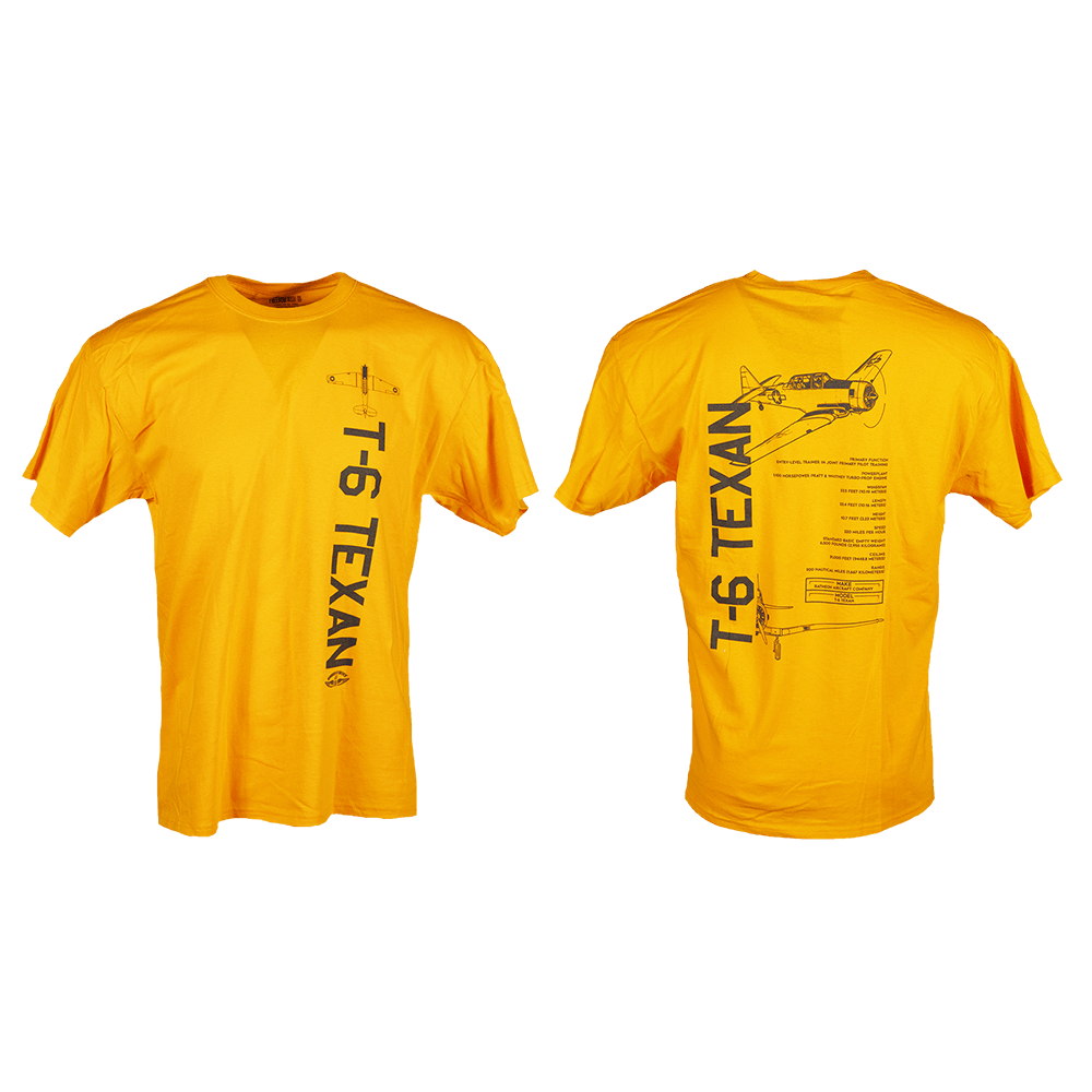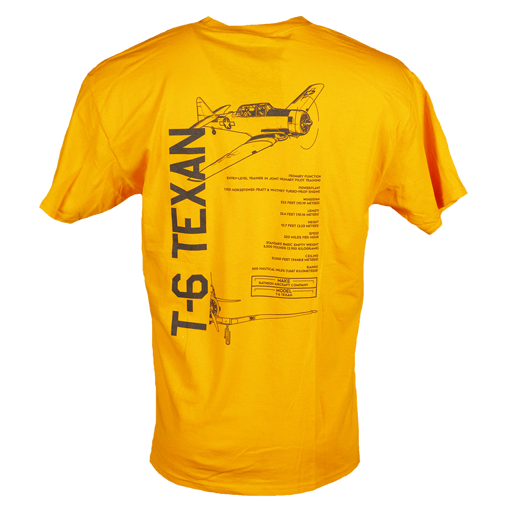 Front: "T-6 Texan" with T-6 plane on side of shirt
