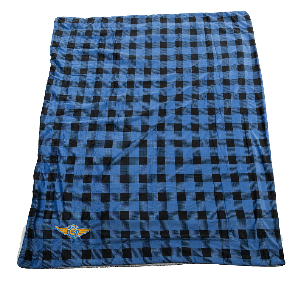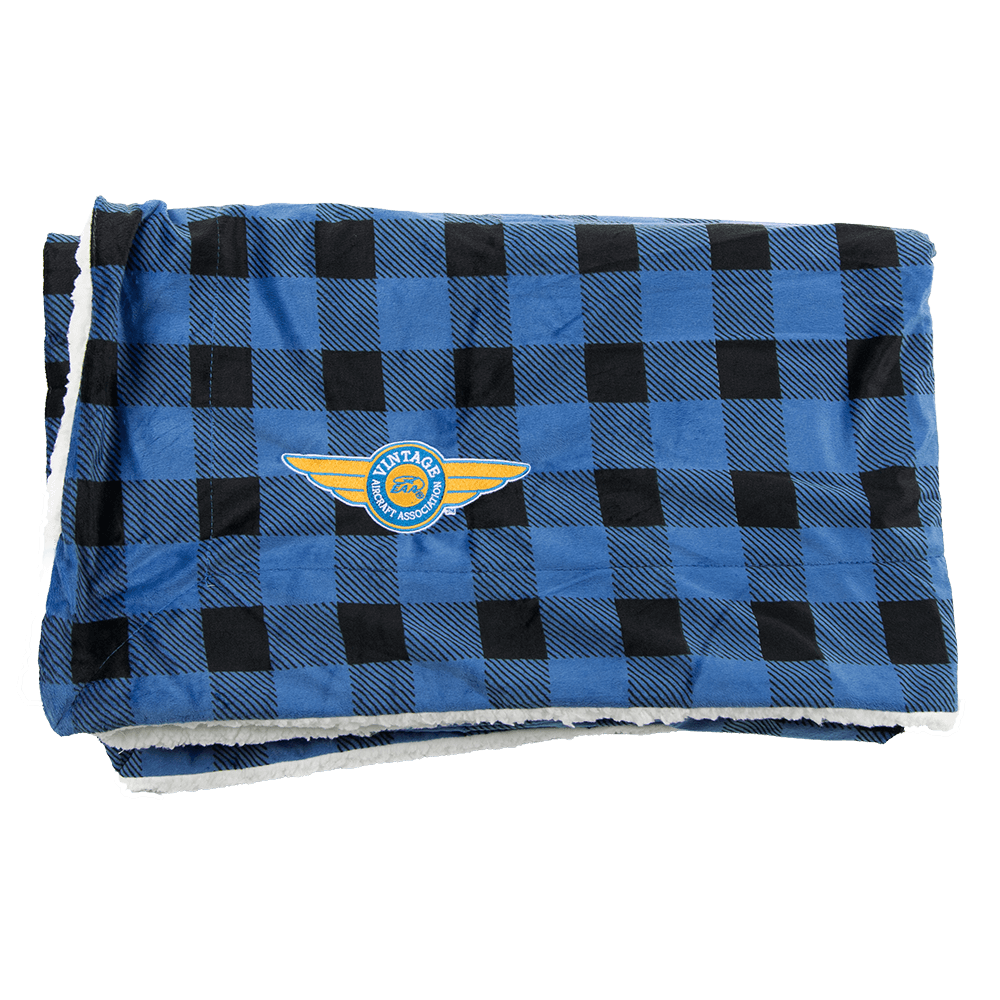 This cozy, plush blanket is perfect for snuggling up under on a cold winter night! Made of ultra-soft Sherpa Faux Micro Mink and Lambswool with the Vintage Aircraft Association logo embroidered in the lower right corner.